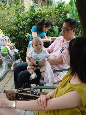 又是一個愉快的週末,珊選擇龍潭的<壹等賞>景觀茶園,不錯的地點,適合全家及親朋好友聚會的好所在,菜也不難吃,只是鹹了點。整裝可以了嗎?在樓下看到珊珊阿姨,臭小子猛親她,因為阿姨買了太多好玩的生日禮物,這幾天全家大小都加入戰場,簡直是一團軍隊紮營在我家終於可以出發了一進門就看到好多小朋友在玩啦!還是先吃飯吧飯好吃非常嫩的桂竹筍這道非吃不可~豬腳土雞太硬了,以後記得不要點好吃的軟殼蟹清淡的養生菇這是媽媽點的烤魚,也只有媽媽一個人吃,因為菜點太多,媽媽是貓轉世的好不好吃?看我就知道啦!連哥哥也笑瞇瞇好好吃,拍拍手吃飯不忘打戰?吃飽後,我們移到戶外喝茶聊天我最喜歡聽姑姑講話爸爸的肚子是我的安全堡壘阿公說:大姑姑是他的老闆,二姑丈馬上獻殷勤幫大姑姑煽風,希望今年也可以拿到年終獎金,二姑丈你想得美,獎金是我和哥哥的!二姑丈,你不要跟我們兩個兄弟搶,好不好?姑姑,我最可愛,你只要記得我就好 路旁有貼心的椅子 餐廳的大門 臭小子最開心,追著泡泡跑 玩累了,休息一下 阿公跟二姑丈最好笑 ,比手畫腳。像不像茶園請的員工在顧茶是父子?還是翁婿? 回家時發現整個停車場剩下我們兩輛車?其他的車全不見了?喔~要下雨了!回到家剛剛好天公落水! 不可能討好每一個人,所以你要討好你自己。